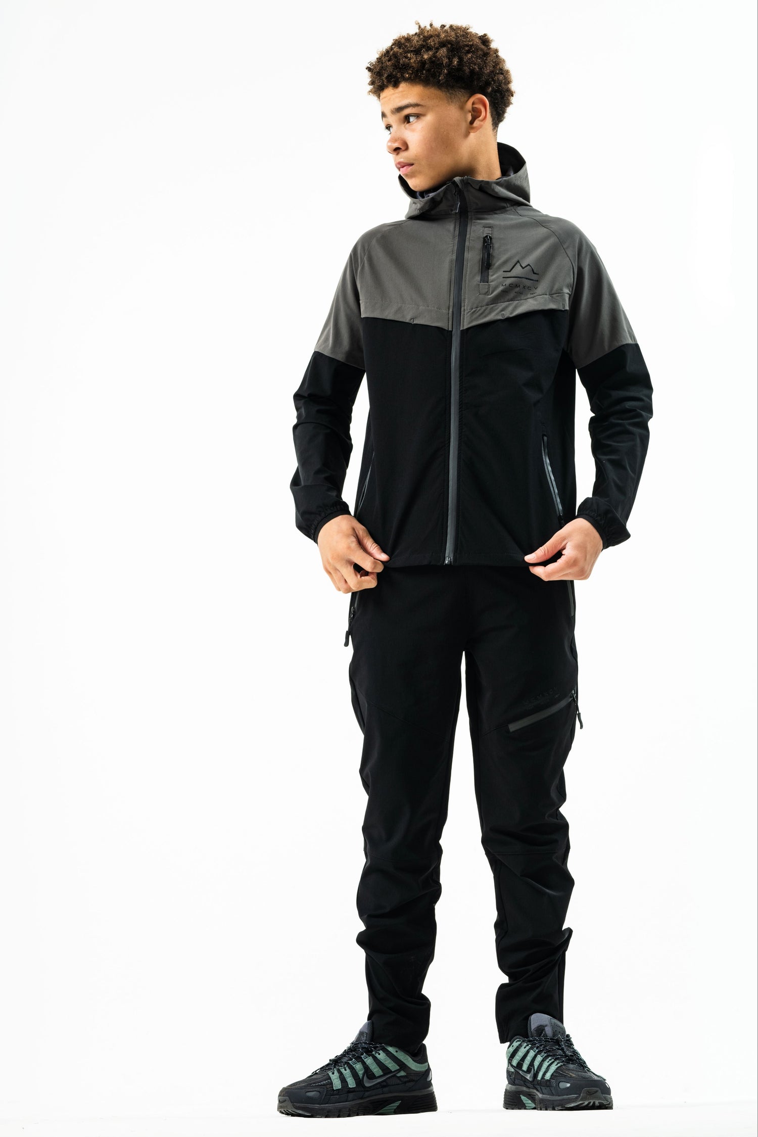 The new ASCENT Junior windbreaker jacket & tech pant set offers a versatile & lightweight layer designed for young adventurers. Expertly crafted from a technical polyester fabric it offers a standard fit for comfort & mobility, designed for both durability & style. The sleek design features a full zip closure, adjustable hood and secure zip pockets to keep essentials safe on the go. With matching tech pant the ASCENT Junior set offers wind-resistant protection & a lightweight fit for outdoor pursuits or just everyday stylish streetwear for urban settings.